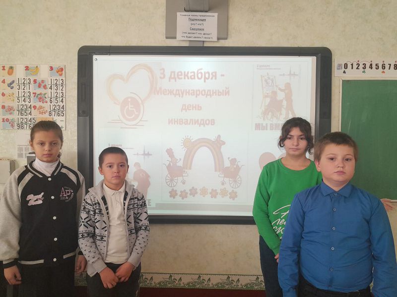 4 декабря в нашей школе были проведены с обучающимися с 1- 9 классов мероприятия, посвященные Урокам Доброты, приуроченных Дню инвалидов, целью проведения которых было формирование у детей представления о добре и добрых поступках, расширение знаний о роли доброты в жизни каждого человека; воспитание взаимовыручки, взаимоуважения и понимания тяжелой жизненной ситуации другого человека.