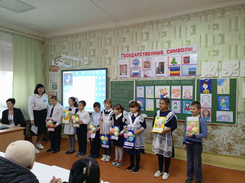 23 ноября 2023 г. в школе состоялся педагогический всеобуч для родителей на тему: «Защита прав и законных интересов несовершеннолетних». В преддверии Дня матери всеобуч был начат учителем начальных классов Реентовой Л.М. с показа презентации по патриотическому воспитанию школьников «День матери-казачки на Дону. Обучающиеся 1-8 классов под руководством классных руководителей подготовили праздничный концерт для мам. Дети пели песни, читали стихи, танцевали и дарили мамам подарки, сделанные своими руками.