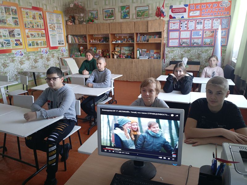 В ноябре месяце обучающиеся 1-11 классов посмотрели киноуроки: первоклассники «Не трус и не предатель» (о дружбе), второклассники «Мой танец» (помощь вместо осуждения), третьеклассники «Трудный выбор» (о моральном выборе), четвероклассники «Другой мир» (о верности идеалам), пятиклассники и шестиклассники посмотрели фильм «Великий» (о справедливости), ученики 7-9 классов - «Мост» (о стойкости и выносливости), старшеклассники 10-11 классов «Если бы не я» ( о силе воли и силе духа).