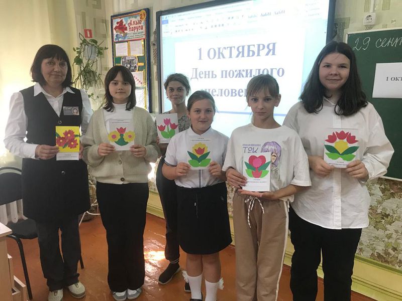 Ко Дню пожилого человека в школе проведена акция «Внуки по переписке». Обучающиеся начальных классов, 5 и 9 классов изготовили открытки своими руками под руководством советника директора по воспитанию Самсоновой Н.А. и классных руководителей. В ходе декадника ученики 5-11 классов посетили своих бабушек и дедушек, оказали им помощь в уборке дворов и поздравили с праздником, пожелав им здоровья, долгих лет жизни и мирного неба над головой.