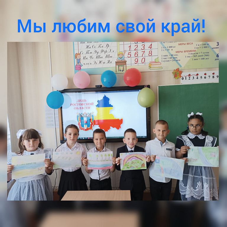13 сентября в школе проведены мероприятия, посвященные 86-летию образования Ростовской области. Урок краеведения «РОСТОВСКАЯ ОБЛАСТЬ – КРАЙ ТИХОГО ДОНА» проведен с обучающимися 1-11 классов классными руководителями совместно с советником директора по воспитанию Самсоновой Н.А. и активом школы. Вначале с детьми был организован кинолекторий «Родной край» по истории Ростовской области, ее символах, достопримечательностях и выдающихся людях, прославивших Донской край.
