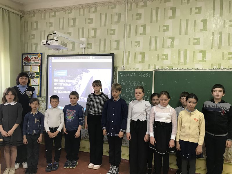 10 апреля 2023 г. школьная линейка начата с подъема государственного флага под исполнение гимна РФ обучающимися 4 класса.