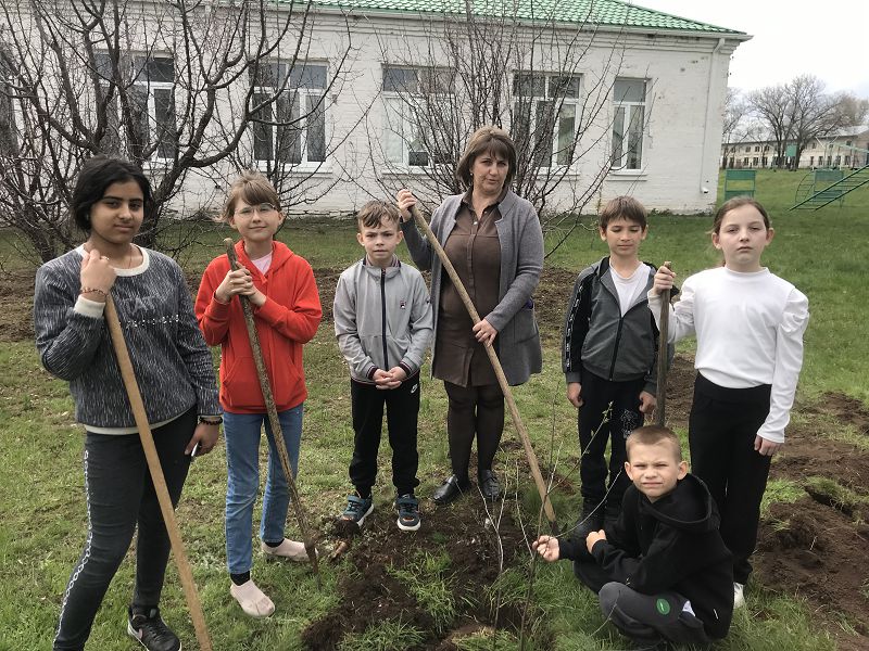 В рамках месячника чистоты 7 апреля 2023 г. обучающиеся нашей школы приняли участие в Дне древонасаждения. На территории школьного двора было высажено 10 деревьев вишни, 3 куста смородины, также в целях реализации проекта «Школьный дворик» в аллею «Сирень Победы» - 7 кустов сирени и обучающимися 7, 8, 10 классов было разработано 2 цветочные клумбы.