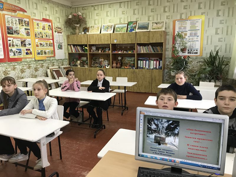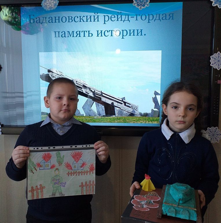 В рамках мероприятий, посвященных 80-летию Тацинского танкового рейда, 22 декабря 2022 г. обучающиеся 2, 4 классов узнали историю героического подвига тацинских мальчишек Гриши Волкова и Феди Игнатенко в годы Великой Отечественной войны. Во время операций Красной армии по разгрому немецкого аэродрома, который снабжал окруженную под Сталинградом 6-ую армию Паулюса, танковому корпусу В.М. Баданова на помощь пришли сельские ребята.