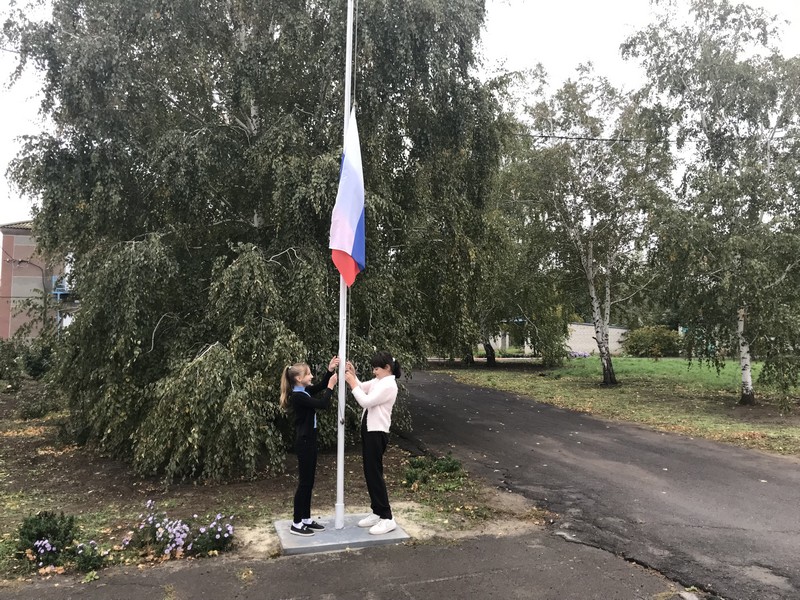 Сегодня, 10 октября 2022 г., учебная неделя началась с поднятия Государственного флага Российской Федерации под исполнение Гимна России. Право вынести флаг России на линейке было предоставлено Бурховцовой Валерии и Черновой Виктории ученицам 4 класса за активное участие в мероприятиях, посвященных Дню учителя.