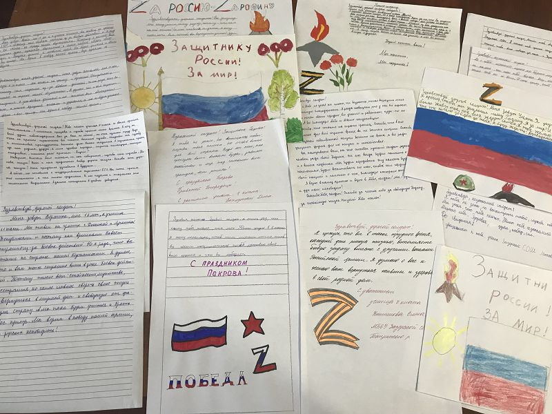 В поддержку наших воинов, участвующих в специальной военной операции, обучающиеся нашей школы приняли активное участие в акции «Письмо солдату к Празднику Покрова». Рисунки и письма детей содержат пожелания мира, мужества и стойкости духа, быстрейшего возвращения солдат в семьи и благодарность за защиту нашей Родины – России от врага.
