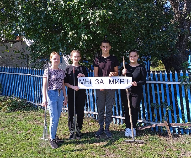 В рамках мероприятий в поддержку СВО 30 сентября 2022 года волонтерами 9-11 классов проведена акция «Мы за мир!». Ребята оказали помощь одиноким пожилым людям в уборке дворов и придворовых территорий: Казьменко З.П., Гелемеевой Л.А., Мышанской П.И, Банько Е.И.