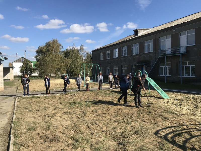 30 сентября 2022 г., учащиеся 1-11 классов и педагоги все вместе вышли на уборку пришкольной территории. Была проведена большая работа по уборке сухой листвы, прополке клумб. Ребята дружно взялись за работу и быстро навели порядок во дворе, на клумбах и детской площадке.