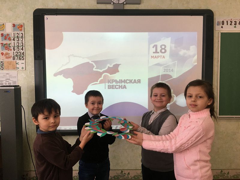 В целях формирования представления об исторической общности народов России, развития чувства патриотизма, единства и гордости за свою многонациональную страну, 16 и 17 марта для обучающихся 1-2 классов были проведены классные часы «Крымская весна».