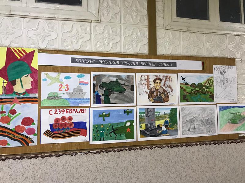 18 февраля 2022 г. подведены итоги школьного конкурса рисунков «России верные сыны» среди обучающихся 1-10 классов под руководством учителей начальных классов Реентовой Л.М., Бурховцовой Н.И., Марковой Н.Г., учителя ИЗО Самсоновой Н.А. Среди 1-4 классов: