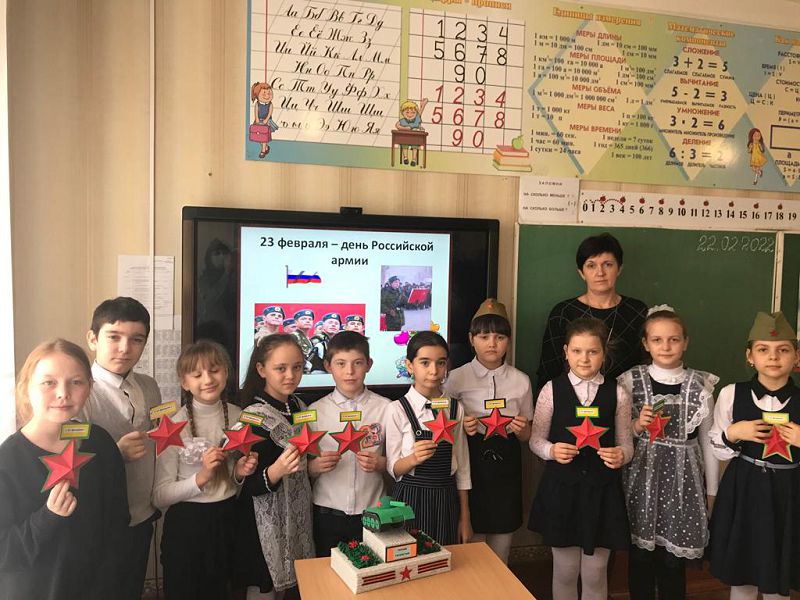 22 февраля 2022 г. в школе состоялись классные мероприятия, на которых состоялось закрытие месячника оборонно-массовой и патриотической работы, посвященного Дню защитников Отечества.
