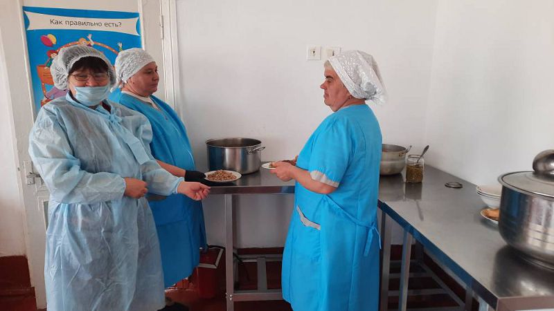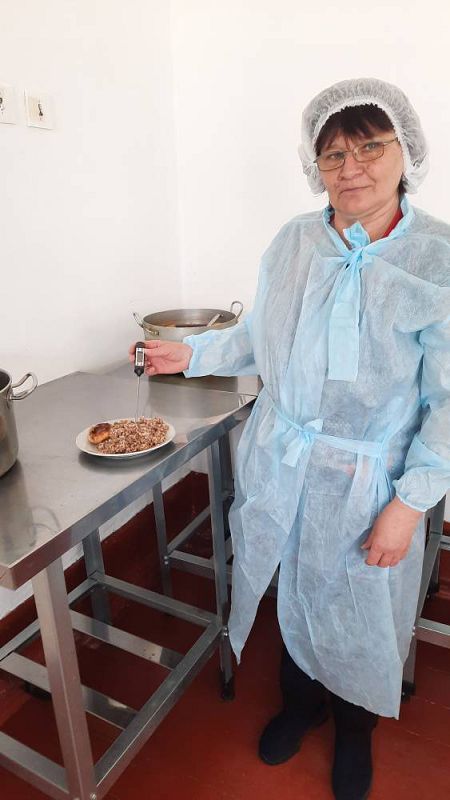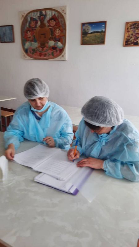 В результате проверки установлено: рацион питания соответствует утверждённому меню, имеется меню дня, санитарное состояние обеденного зала хорошее, приём пищи осуществляется в соответствии с графиком, качество готовой продукции соответствует нормативным требованиям. Температура подачи блюд соответствует СанПин.