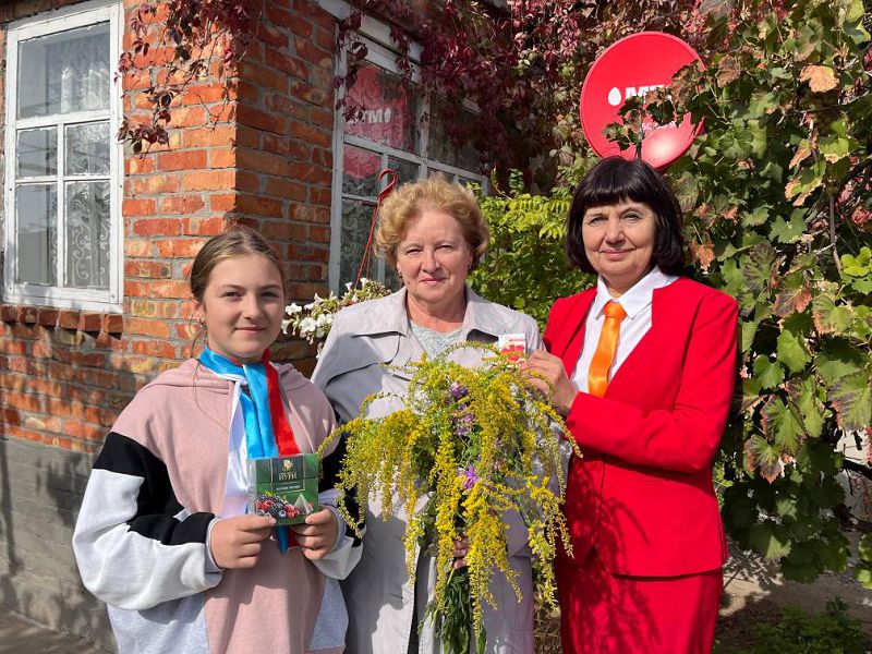 В рамках акции с Днем учителя поздравили учителей, которые работали в МБОУ Зазерской и Араканцевской школах, активисты-волонтеры совместно с советником директора по воспитанию и взаимодействию с детскими общественными объединениями Самсоновой Н.А. и заместителем директора по УВР Казьменко М.Н.. Поблагодарили за учительский труд, за годы отданные этой нелёгкой профессии: директора школы, учителя географии Казьменко Л.В., завуча, учителя математики Выпряжкину Г.Н., учителя физической культуры Выпряжкина А.В., учителя начальных классов Ляшенко Л.М., учителя русского языка и литературы Матвиенко Л.А., учителя немецкого языка Пушкареву Н.А., учителя физической культуры Пигарева В.И., учителя начальных классов Маркову Н.Г., учителя русского языка и литературы Гаунову И.А., директора Араканцевской школы, учителя истории Маркову О.И., учителя географии Хохлочеву В.К., учителя математики и немецкого языка Бут-Гусаим Н.Ф. и учителя начальных классов Журавлеву О.К..