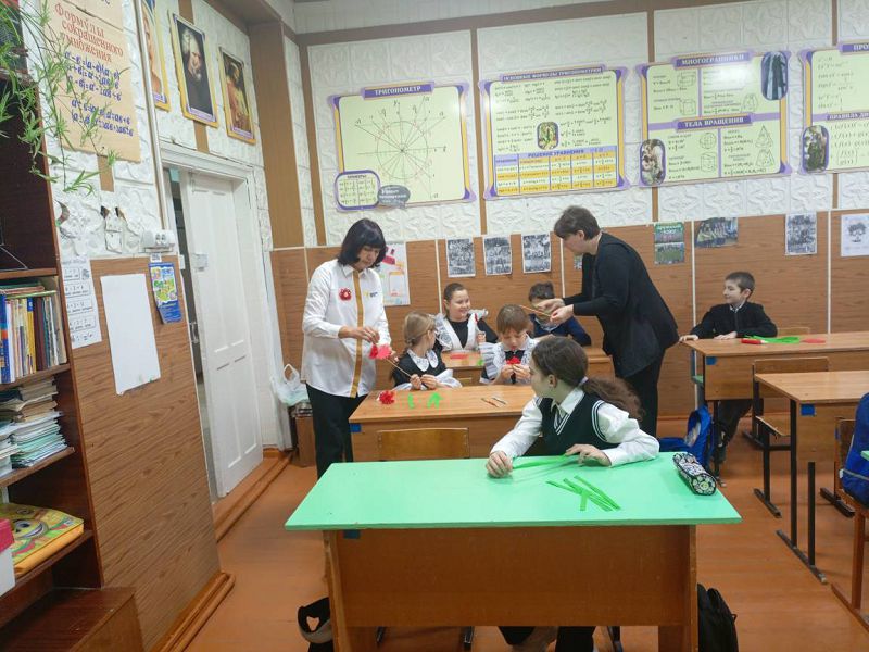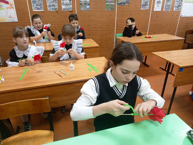 Акция "Красная гвоздика" была организована с обучающимися 1-4 классов советником директора по воспитанию Надеждой Самсоновой совместно с наставниками программы "Орлята России" 10 класса и классными руководителями Мариной Казьменко и Ларисой Реентовой.