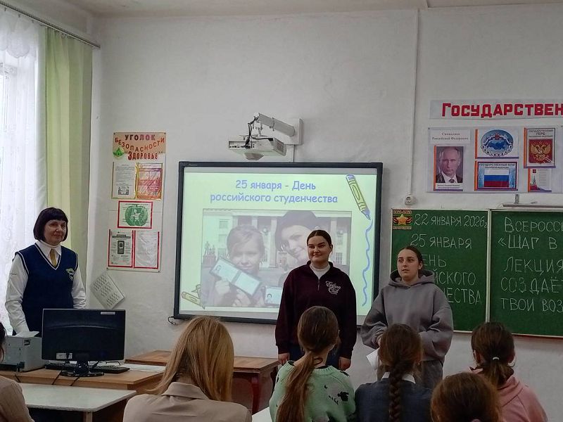 Ко Дню российского студенчества, 22 января 2026 года, в рамках Всероссийской акции "Шаг в студенчество" в Зазерской школе организована Классная встреча со студентами - выпускниками нашей школы советником директора по воспитанию Надеждой Самсоновой совместно с активистами "Движение первых" Варварой Иванчиной и Елизаветой Лебедевой ученицами 10 класса.
